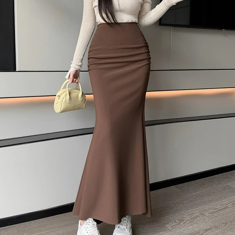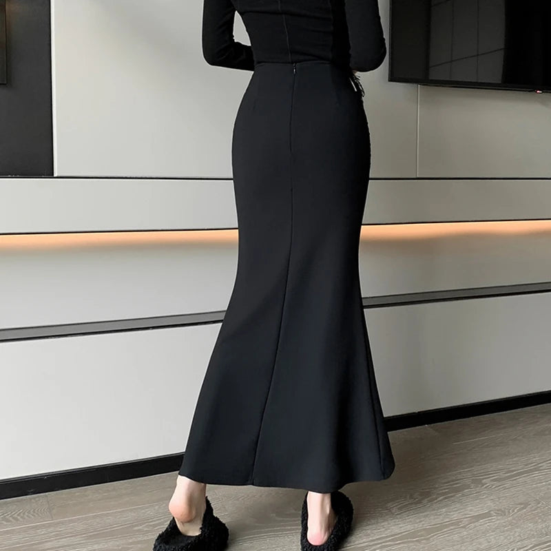 Elegant Fishtail Long Black Skirts Women 2026 High Waist Streetwear Y2k Clothes Korean Style Slim Office Lady Harajuku Mid Skirt