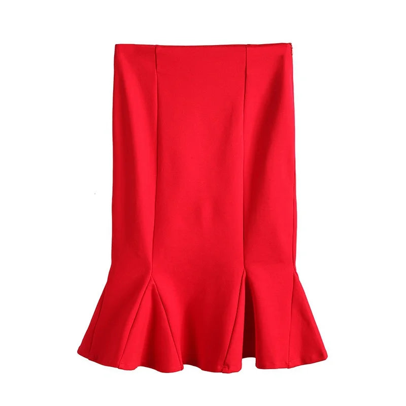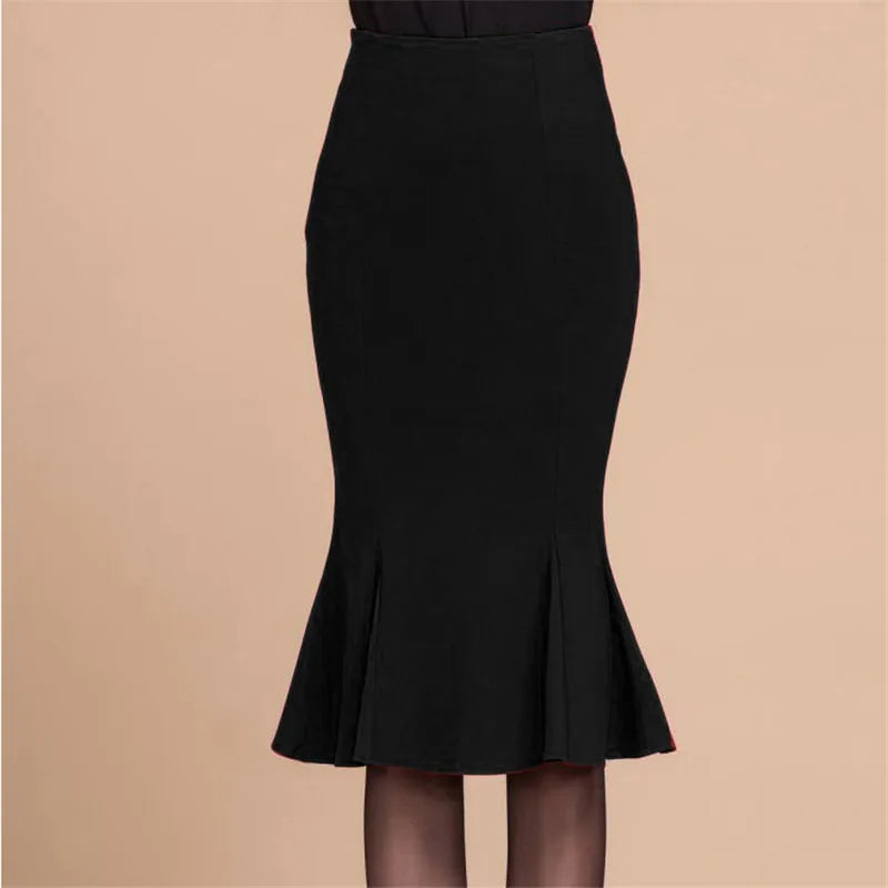 High waist fishtail skirt skirt in the long ruffled slim large size bag hip stretch skirt