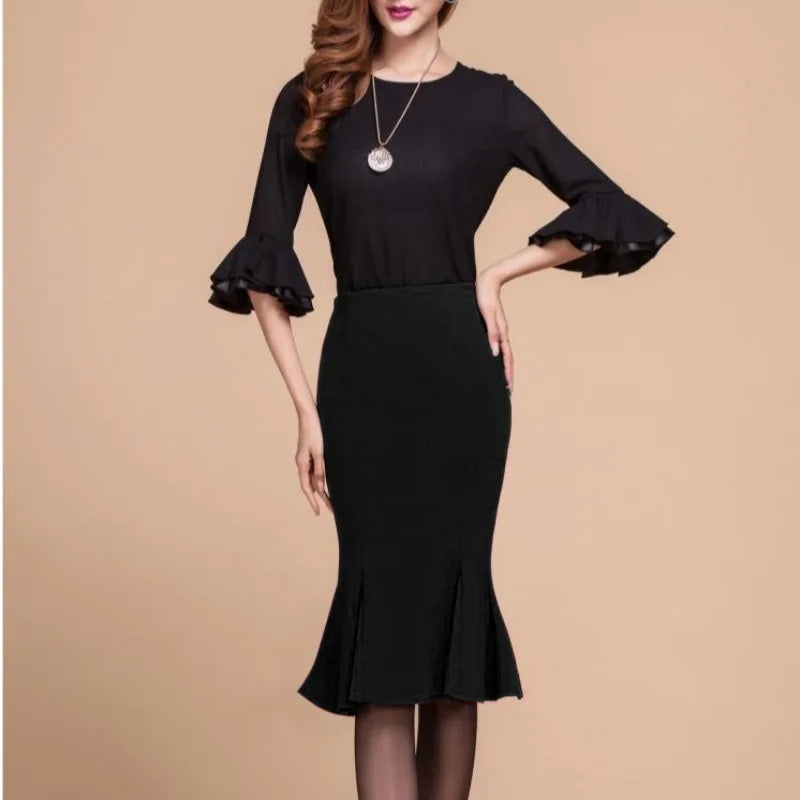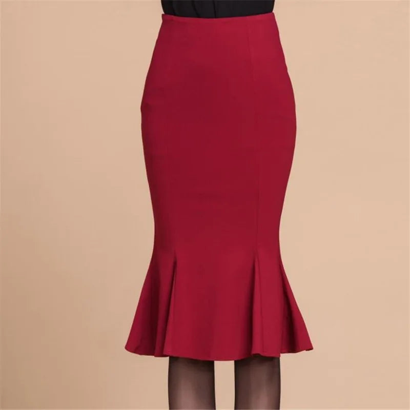 High waist fishtail skirt skirt in the long ruffled slim large size bag hip stretch skirt