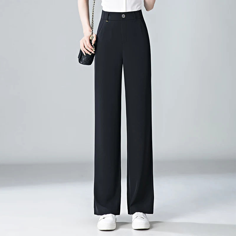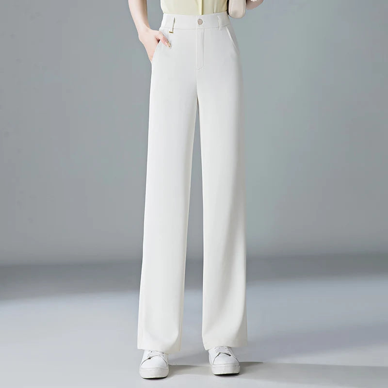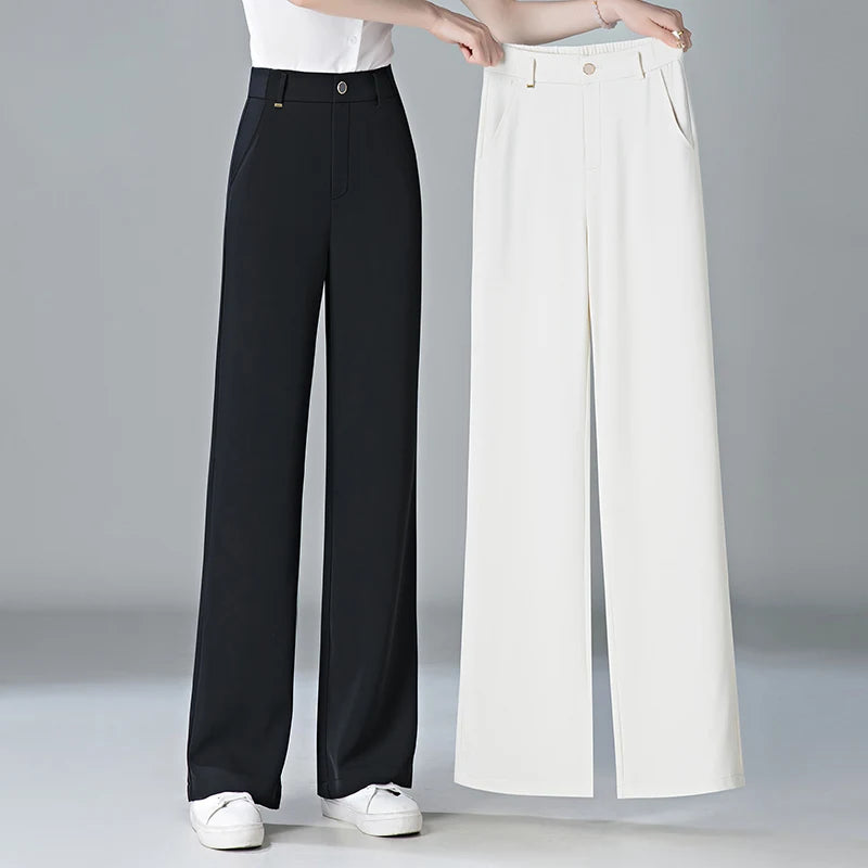 white Straight leg Pants Women's Summer Thin ice silk 2024 new high Waisted drape Slimming Loose Casual Straight cylinder Pants